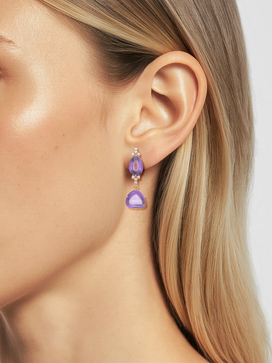 Серьги 9201252-00170 Au 585 (2020256900075 (16 Бр. кр57 (1,40) 0,192 ct 3/5 /А ,2 Амет. лепесток 11,50*7,00 3,52 ct ,2 Амет. лепе)