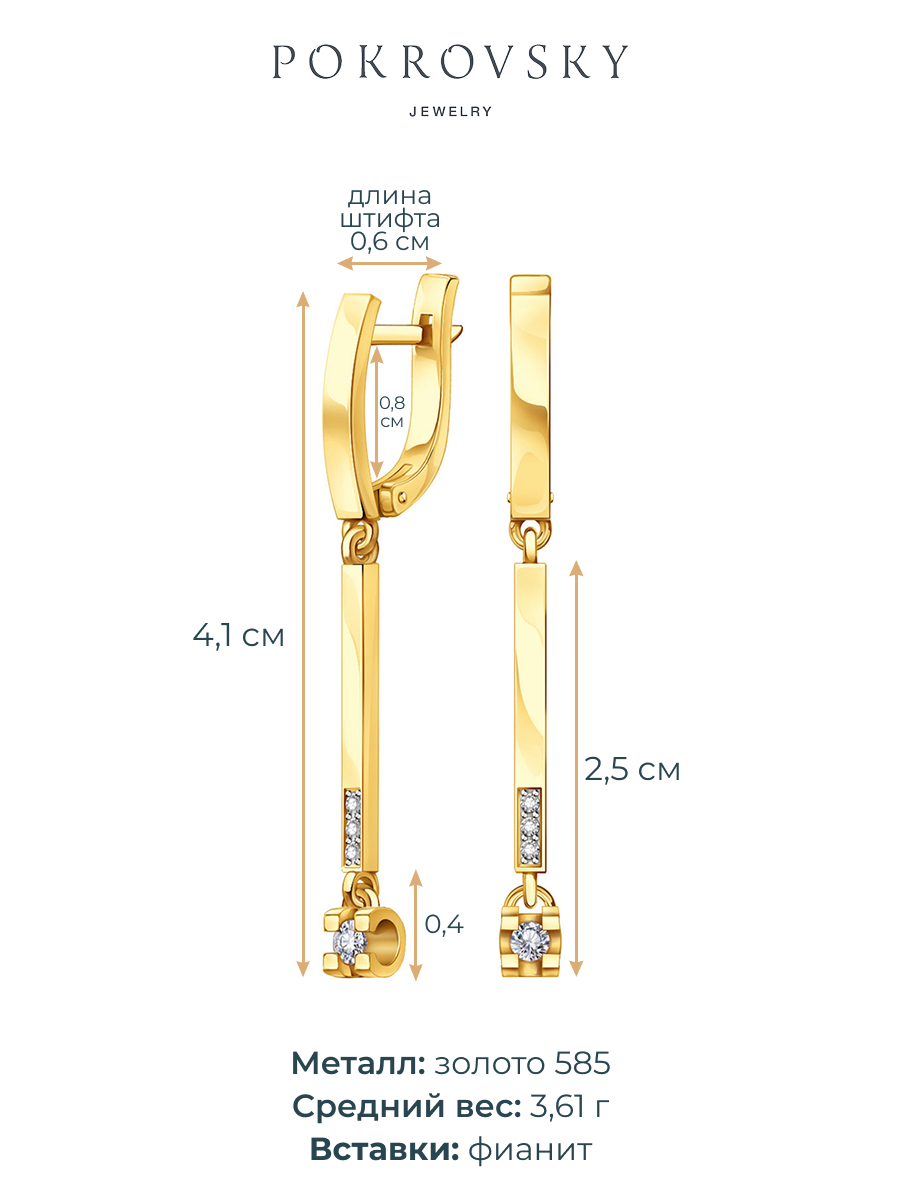 Серьги 2101381-00771 Au 585 (2020242104104(6 Фиан. кр. 1,25 0,018 г. ,2 Фиан. кр. 2,50 0,06 г.))