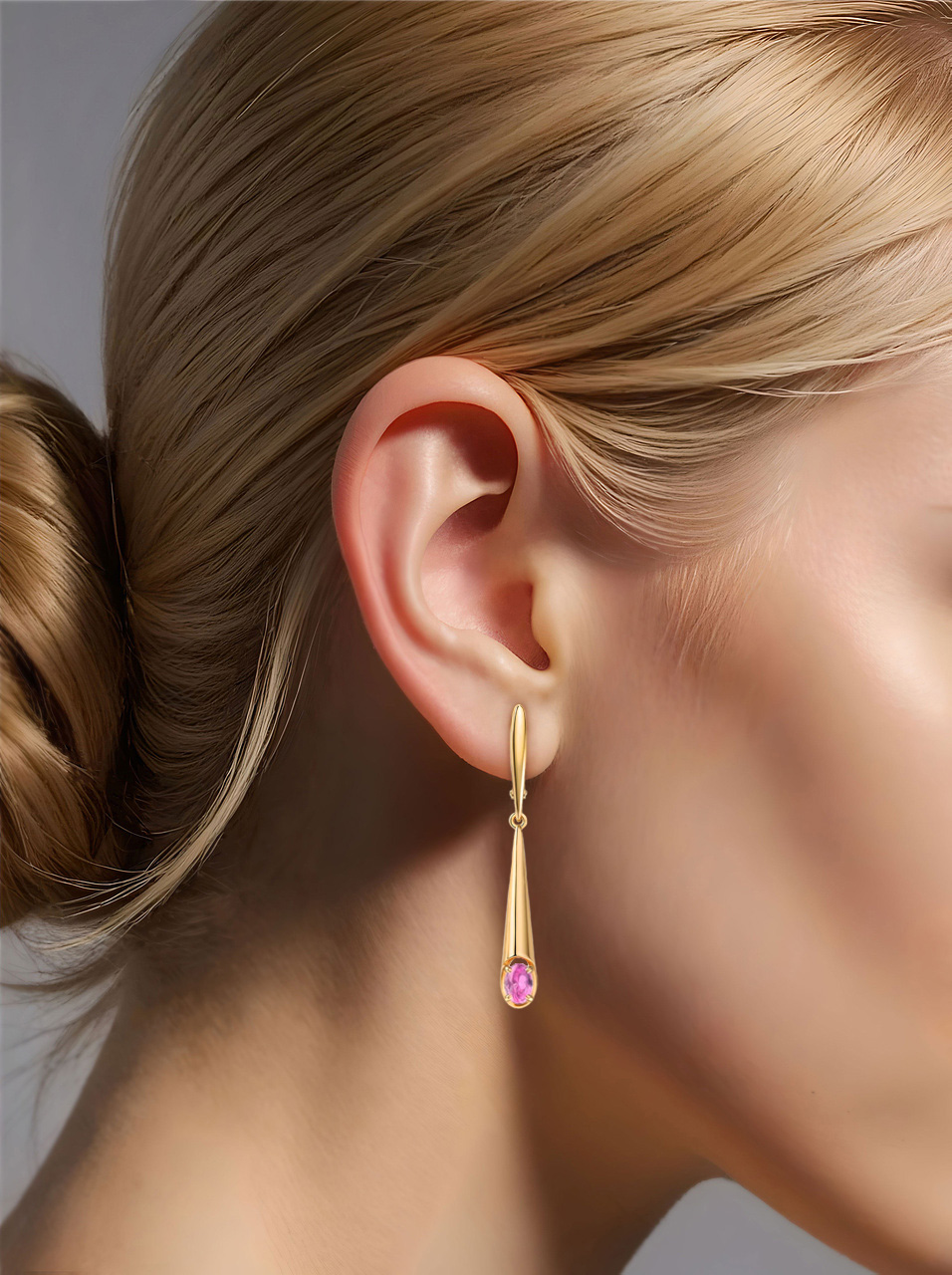 Серьги 2101364-00920 Au 585 (2020245347423(2 Турм. овал кабошон 6,00*4,00 0,94 ct розовый))