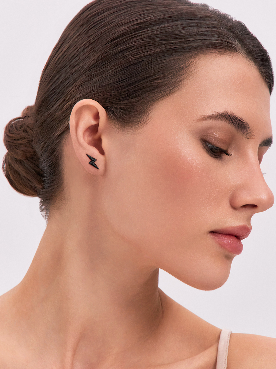 Серьги клаймберы серебряные 925 молнии с черными фианитами 0201715-00205