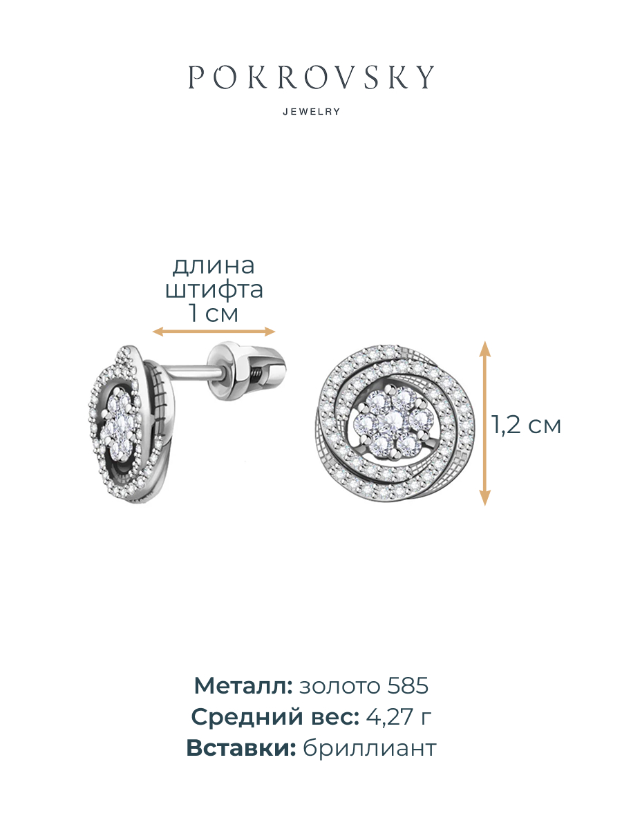 Серьги пусеты из белого золота 585 с бриллиантами