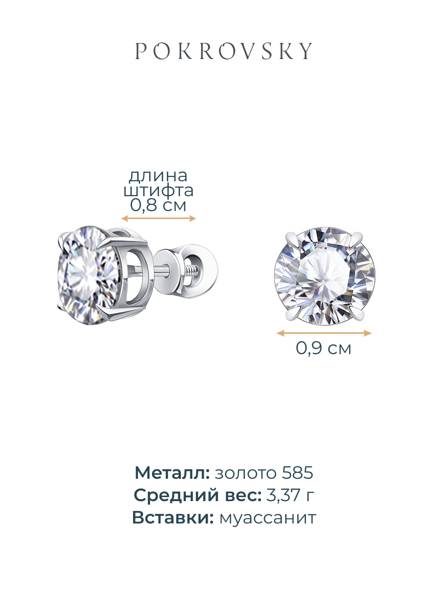 Пусеты 6001856-05432 Au 585 (2020268664965 (2 Муассанит круг 9,00 5,132 ct))
