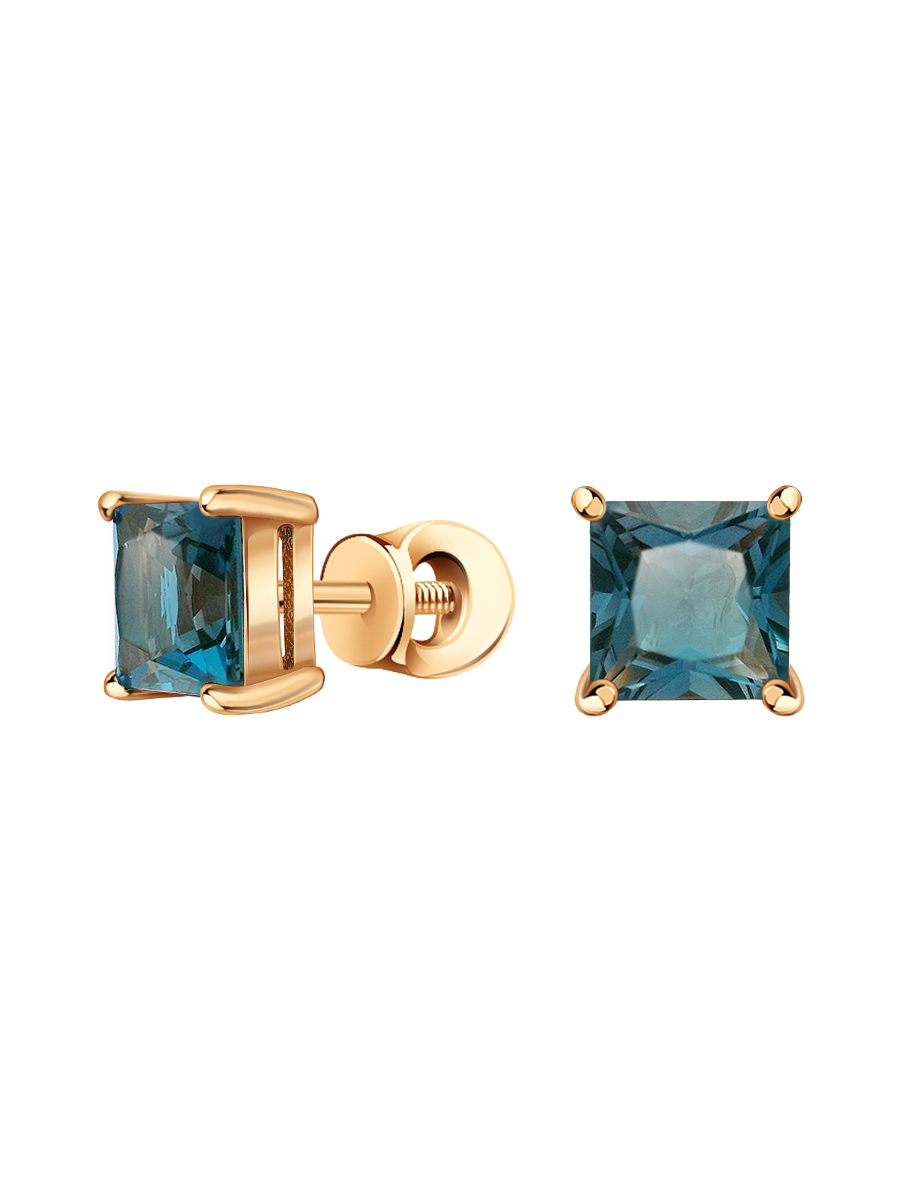 Пусеты 6001600-00710 Au 585 (2020268116853 (2 Топаз лондон блю кв. 6,00*6,00 2,35 ct синий))