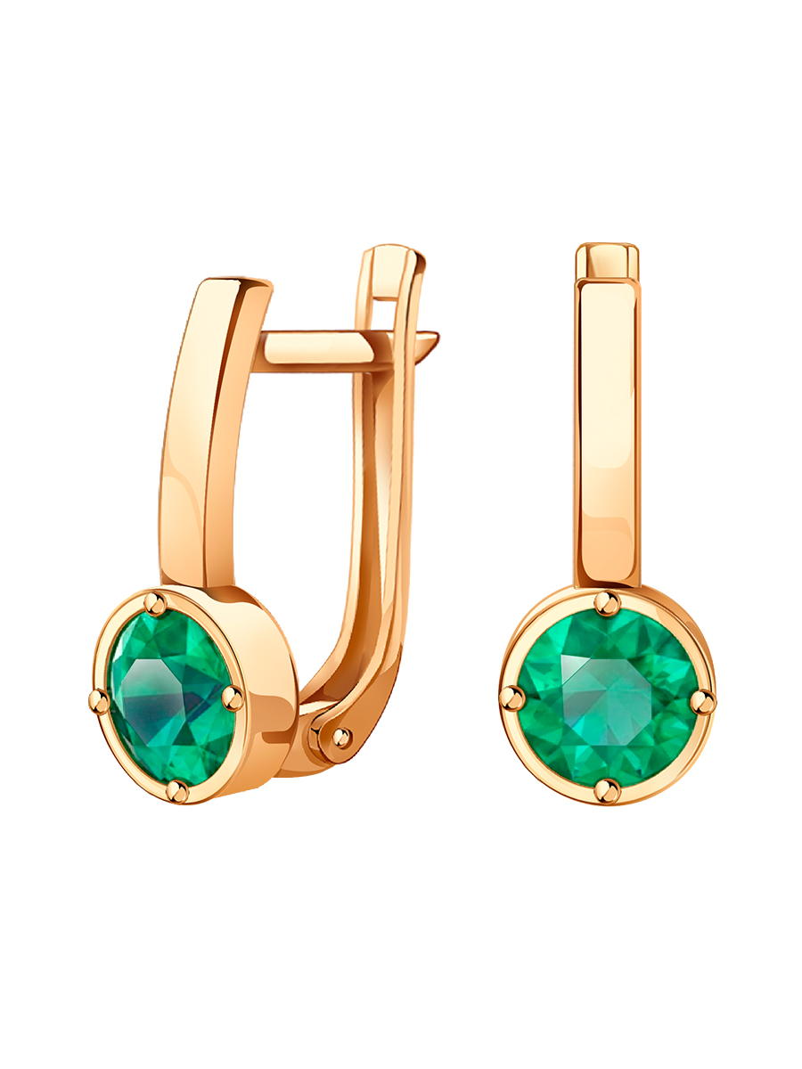 Серьги 0201396-03610 Au 585 (ШК: 2020069495737; Вставка: 2 Кварц синт. круг 4,00 0,4 ct изумрудный; Вес: 1,72)