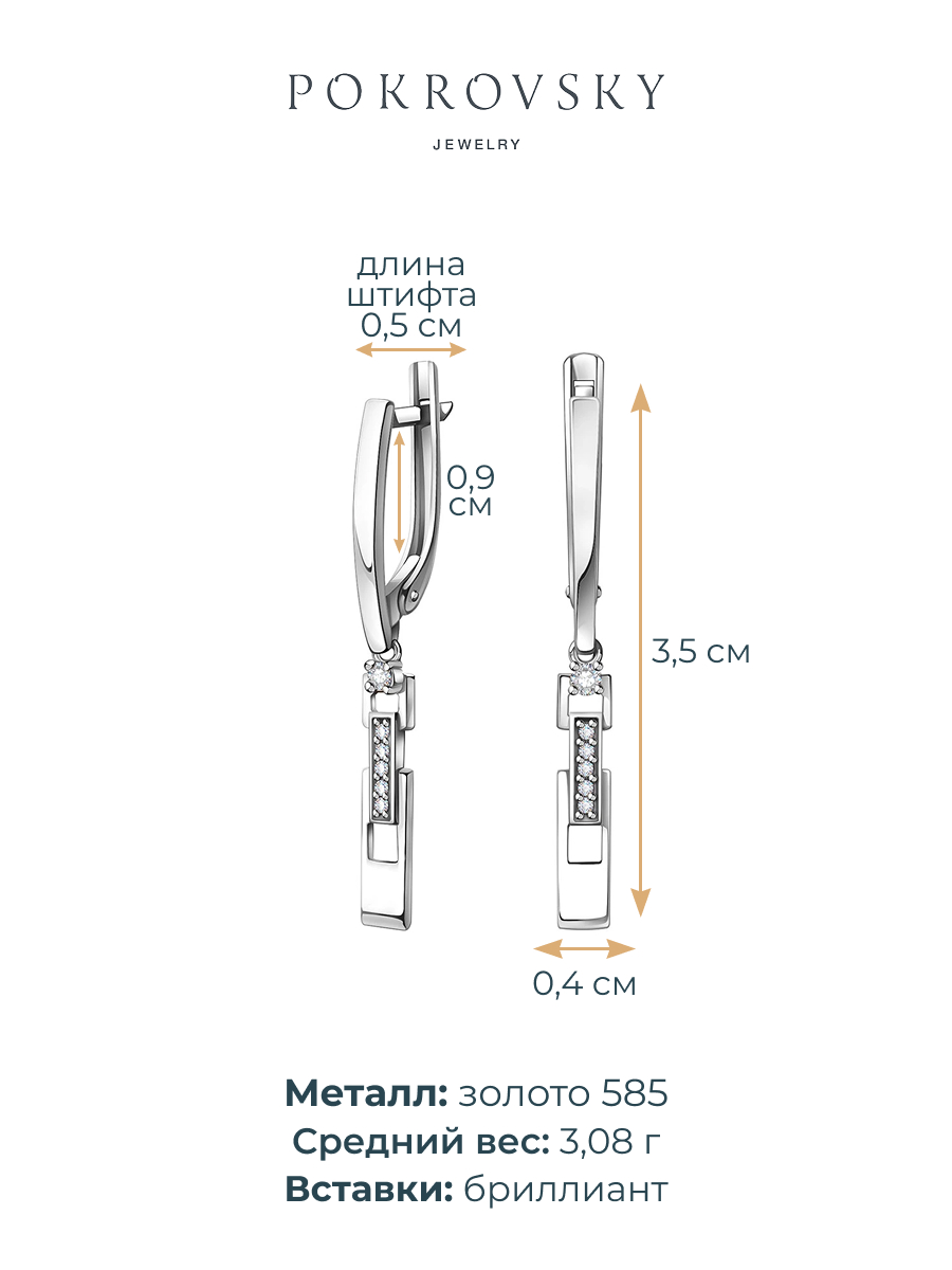 Серьги 0201936-00002 Au 585 (2020250663594(2 Бр. кр57 (2,00) 0,064 ct 3/6 /А ,10 Бр. кр57 (1,00) 0,04 ct 3/3 /А))