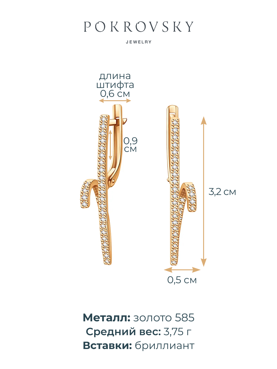 Серьги длинные золотые 585 с бриллиантами