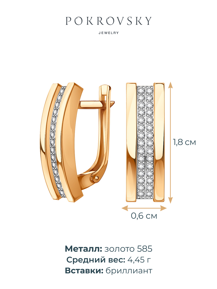 Шикарные сережки с камнями - идеальное украшение для создания незабываемого образа. Женственные и стильные серьги являются настоящим модным трендом 2024 года. Изготовлены из высококачественного золота 585 пробы. Крупная модель отличается не только своей красотой, но также прочностью и долговечностью. Замок английского типа обеспечивает надежную фиксацию на ушах, что делает их комфортными для повседневной носки. Красивые и блестящие дорожки добавят шик и элегантность. Необычные и большие золотые сережки - прекрасный выбор для тех, кто предпочитает минимализм и классический стиль. Они идеально подойдут в качестве подарка для вашей подруги, любимой или любого другого особенного человека в вашей жизни.Сочетание золота и камней бриллиантовой огранки создаёт эффектный контраст и добавляет им загадочности и изысканности. Создайте оригинальный и праздничный вечерний образ. Будьте на пике моды и выделяйтесь из толпы с этими уникальными украшениями. В комплекте идет подарочная упаковка. Покровский ювелирный завод производит стильные изделия уже более 20 лет в России под брендом POKROVSKY JEWELRY. Каждому изделию нашего производства присвоен УИН от пробирной палаты РФ, по которому можно проверить подлинность драгоценного металла.