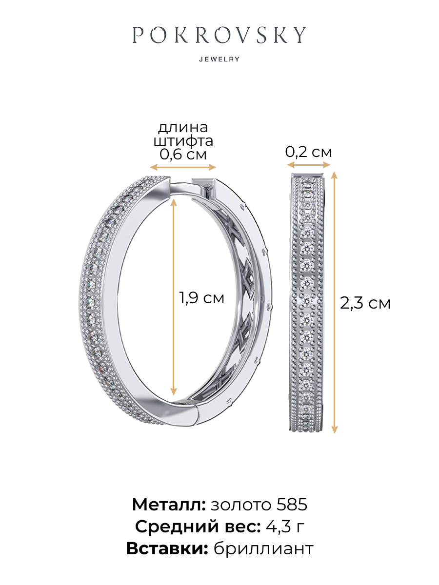 Серьги кольца из белого золота 585 с бриллиантами 22 мм