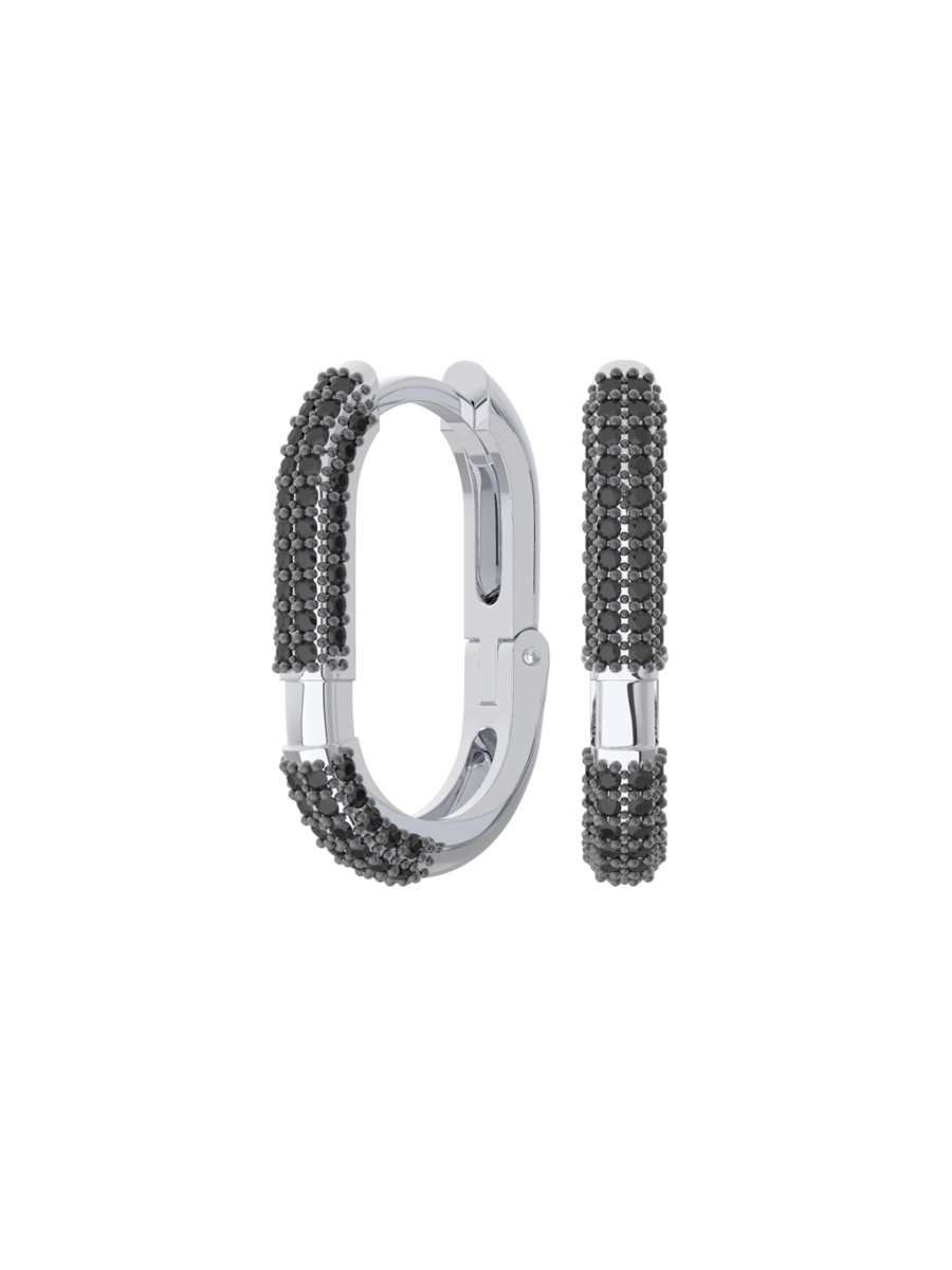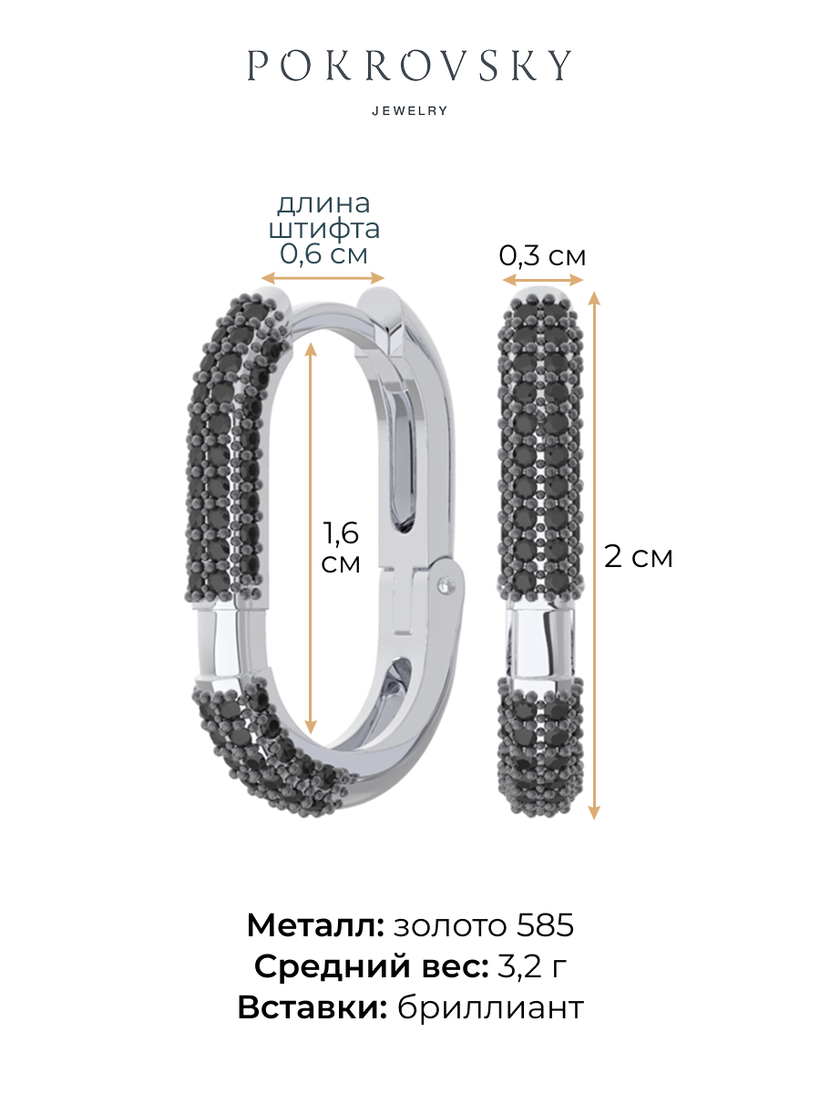 Серьги кольца из белого золота 585 с черными бриллиантами 20 мм