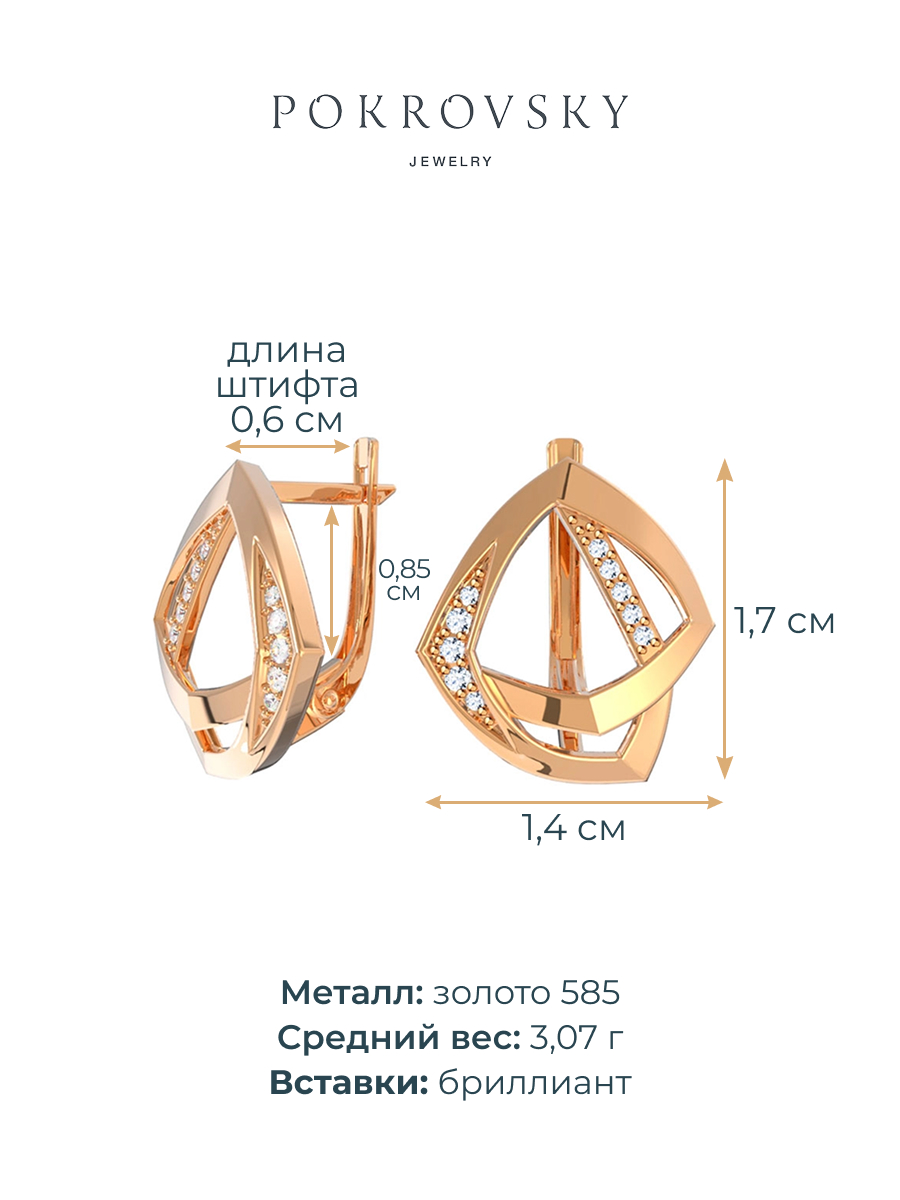 Серьги 2101705-00000 Au 585 (2020250922653(14 Бр. кр57 (1,00) 0,056 ct 4/5 /А ,6 Бр. кр57 (1,25) 0,048 ct 4/6 /А))