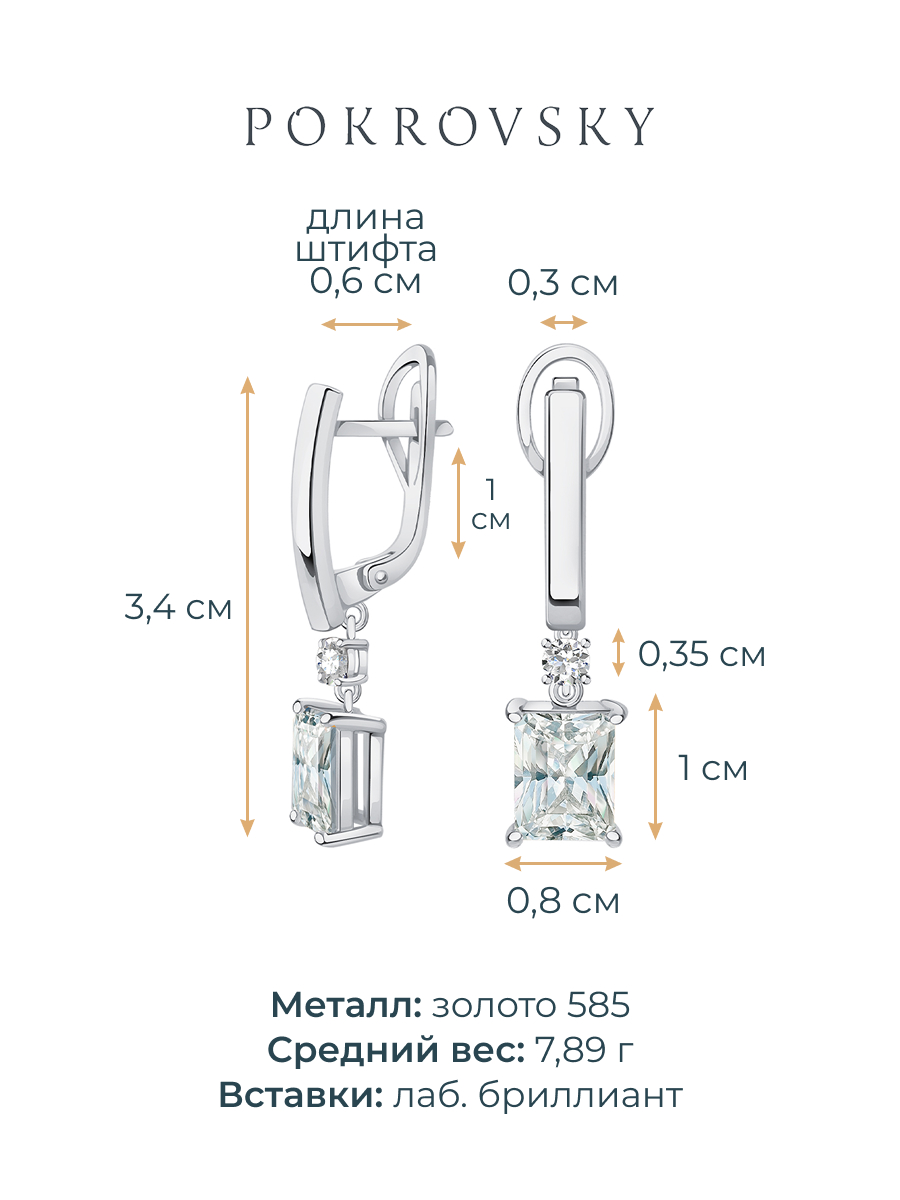 Серьги 0202342М06422 Au 585 (2020267985511 (2 Бр.лаб Бп-33 9,00*7,00 6,1 ct 3/5 ,2 Бр.лаб Кр-57 3,50 0,34 ct 3/5))
