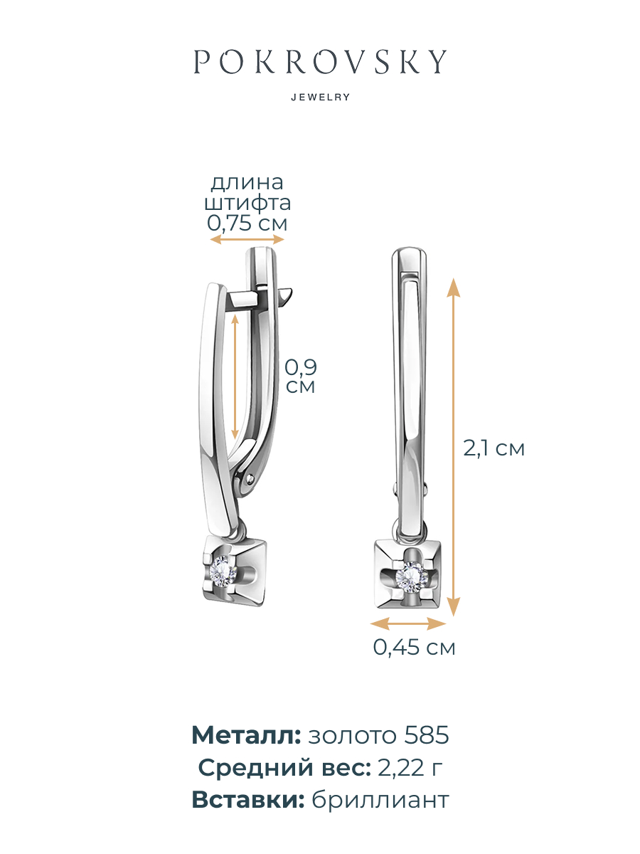 Серьги подвески из белого золота 585 с бриллиантами