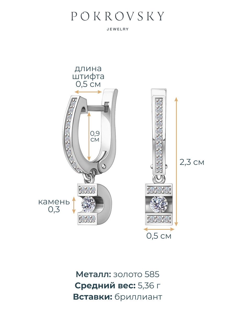 Серьги подвески из белого золота 585 с бриллиантами