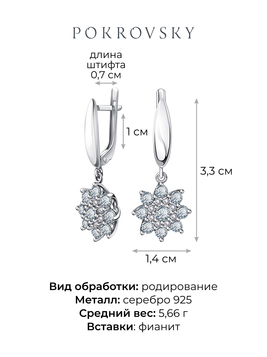 Серьги подвески серебряные 925 с фианитами 2101781-00775
