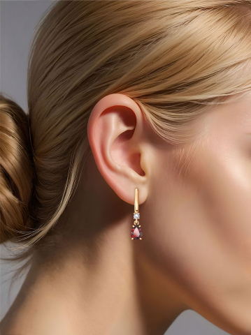 Серьги подвески золотые 585 с гранатами и фианитами