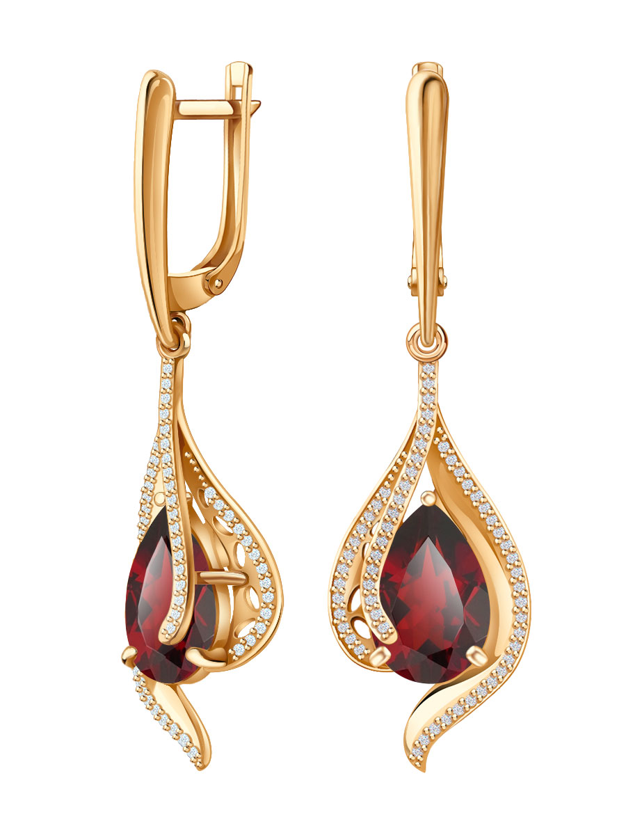 Серьги подвески золотые 585 с гранатами и фианитами 2101257-00320