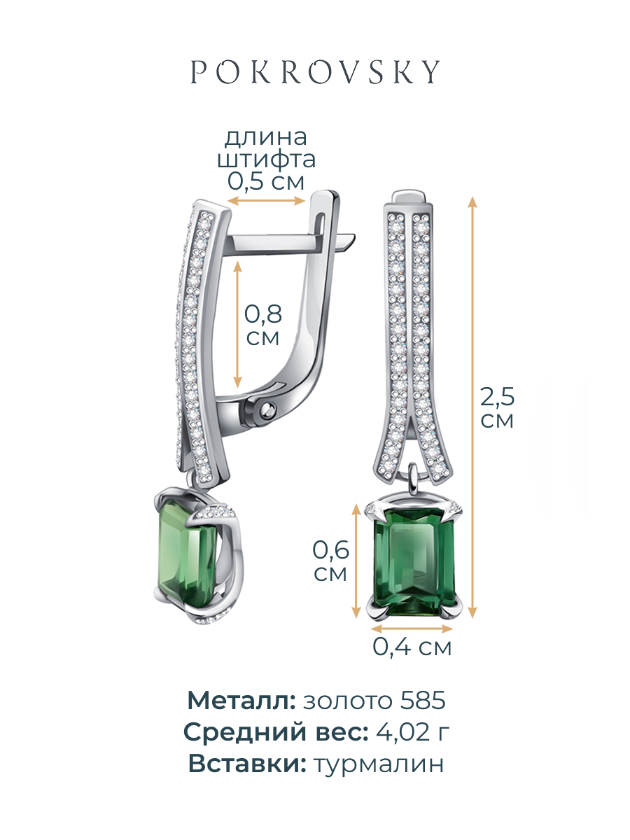 Серьги подвески золотые 585 с турмалинами и бриллиантами 9201460-01522