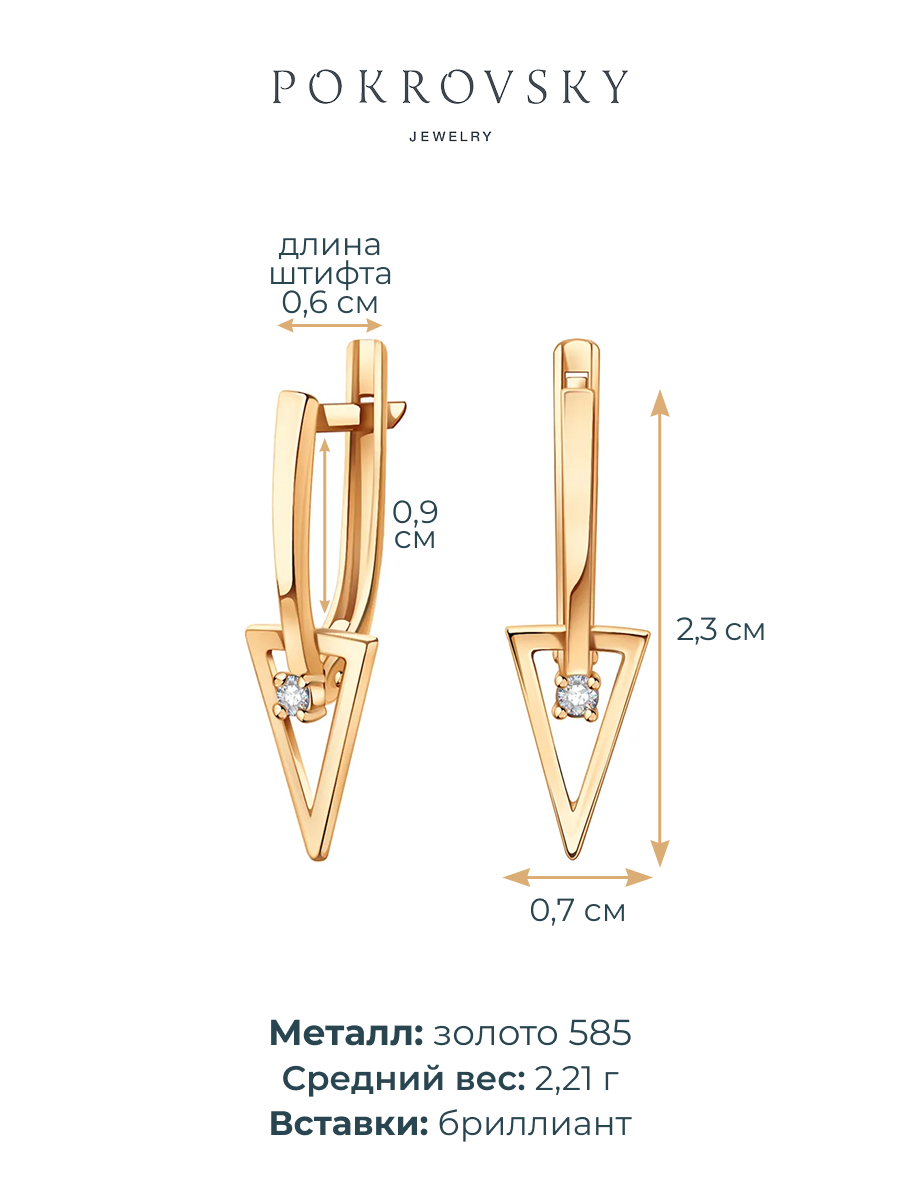 Серьги подвески золотые 585 треугольники с бриллиантами