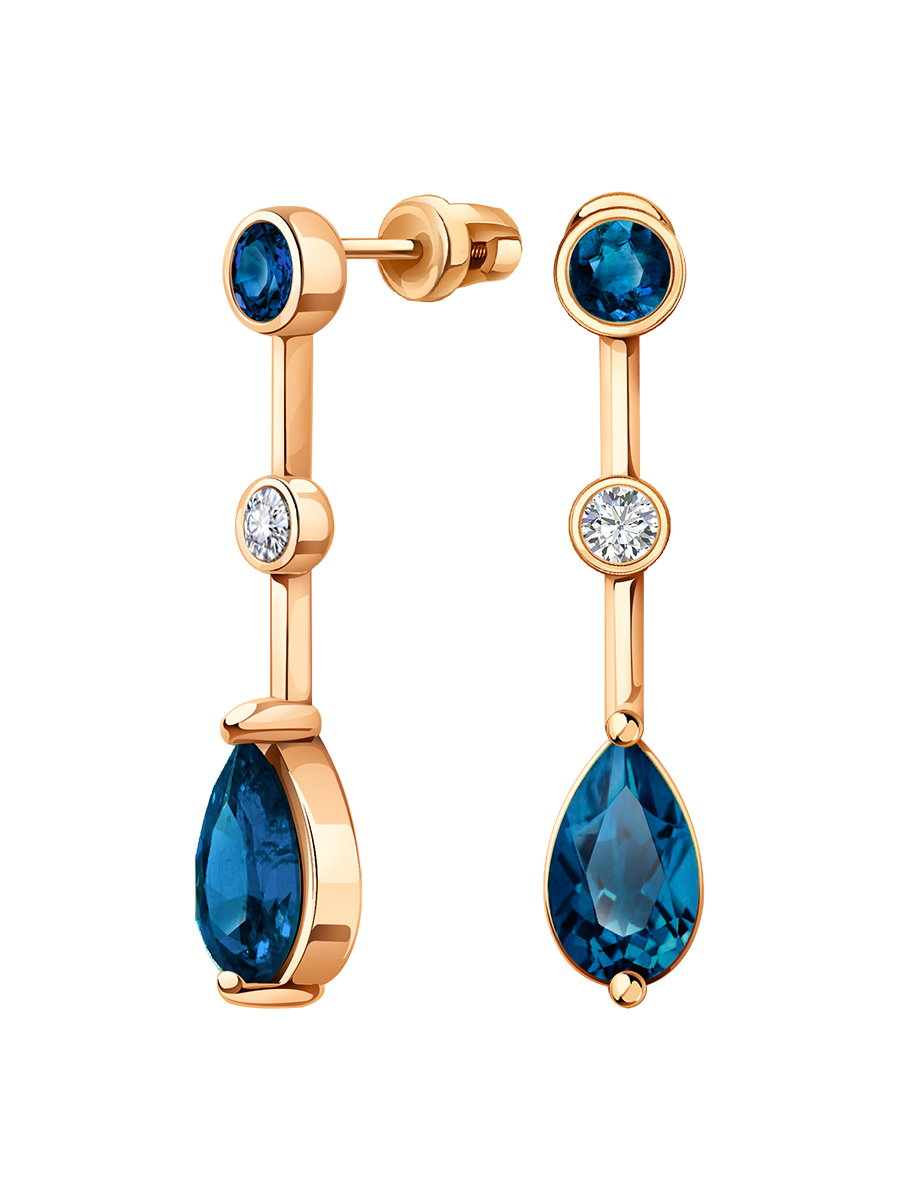 Пусеты 6100259-10050 Au 585 (ШК: 2000023508840; Вставка: 2 Бр. кр57 (2,00) 0,062 ct 4/5 /А ,2 Сапф. груша 6,00*4,00 0,9 ct 2/2 си)