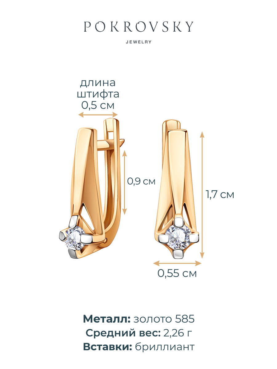 Серьги 2101718-00000 Au 585 (2020263580222 (2 Бр. кр57 (3,00) 0,206 ct 4/5 /А))