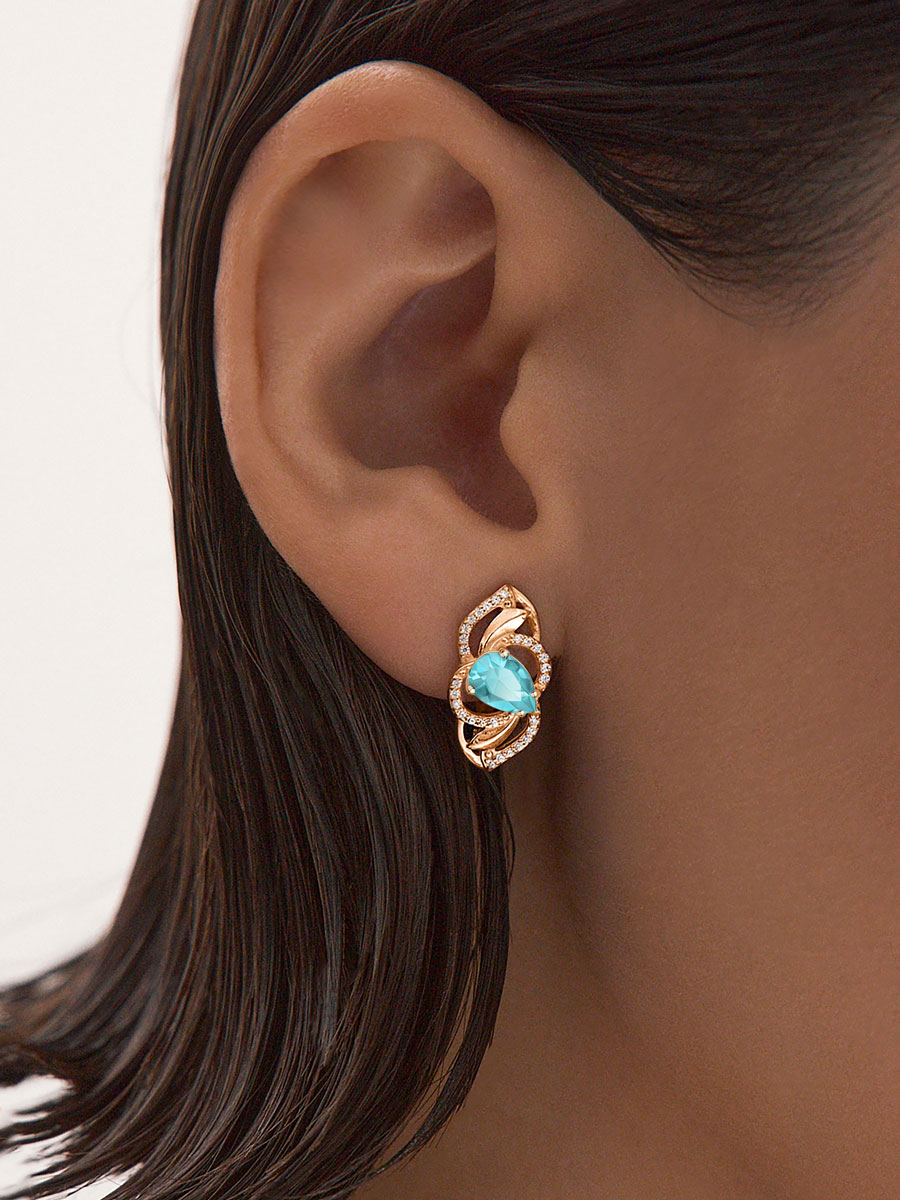 Серьги золотые 585 с голубыми топазами и фианитами 2100980-00720