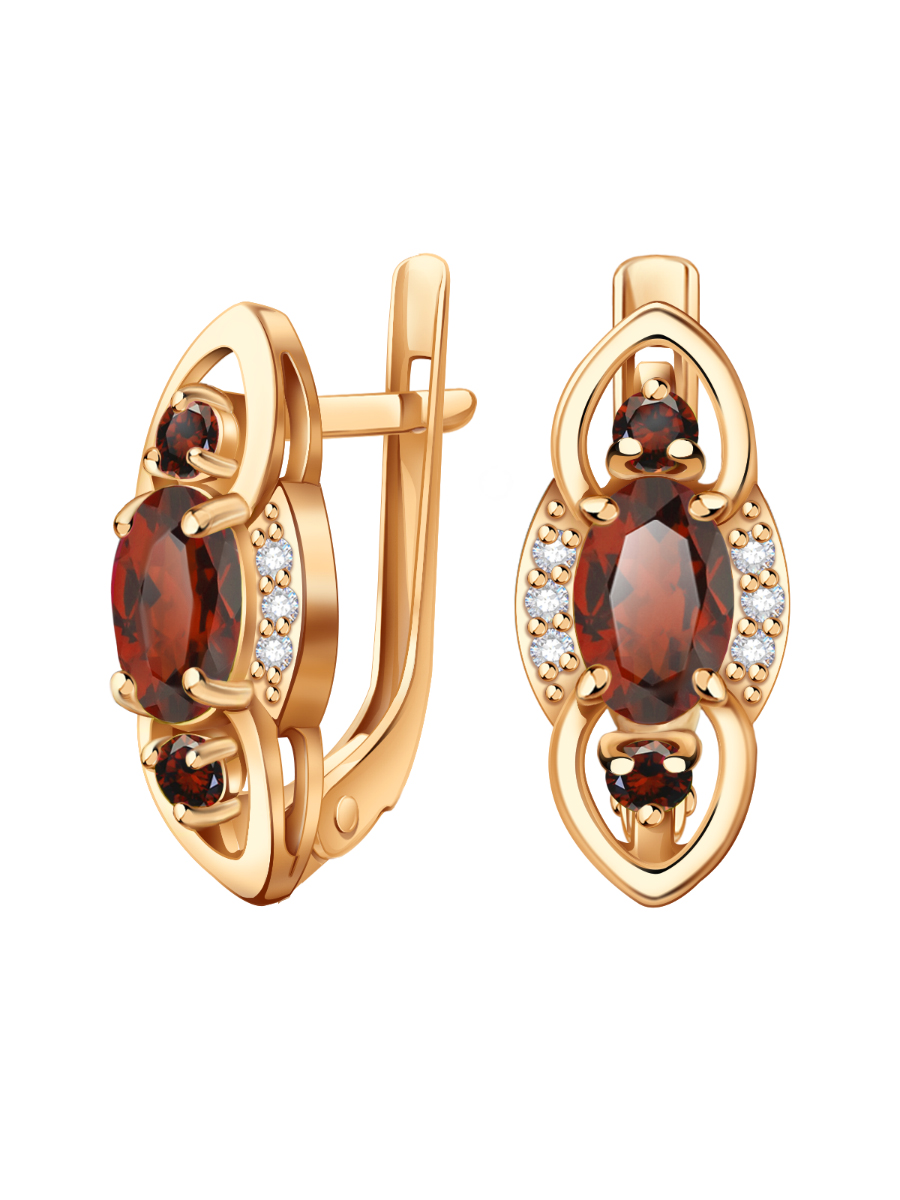 Серьги золотые 585 с гранатами и фианитами 2101278-00320