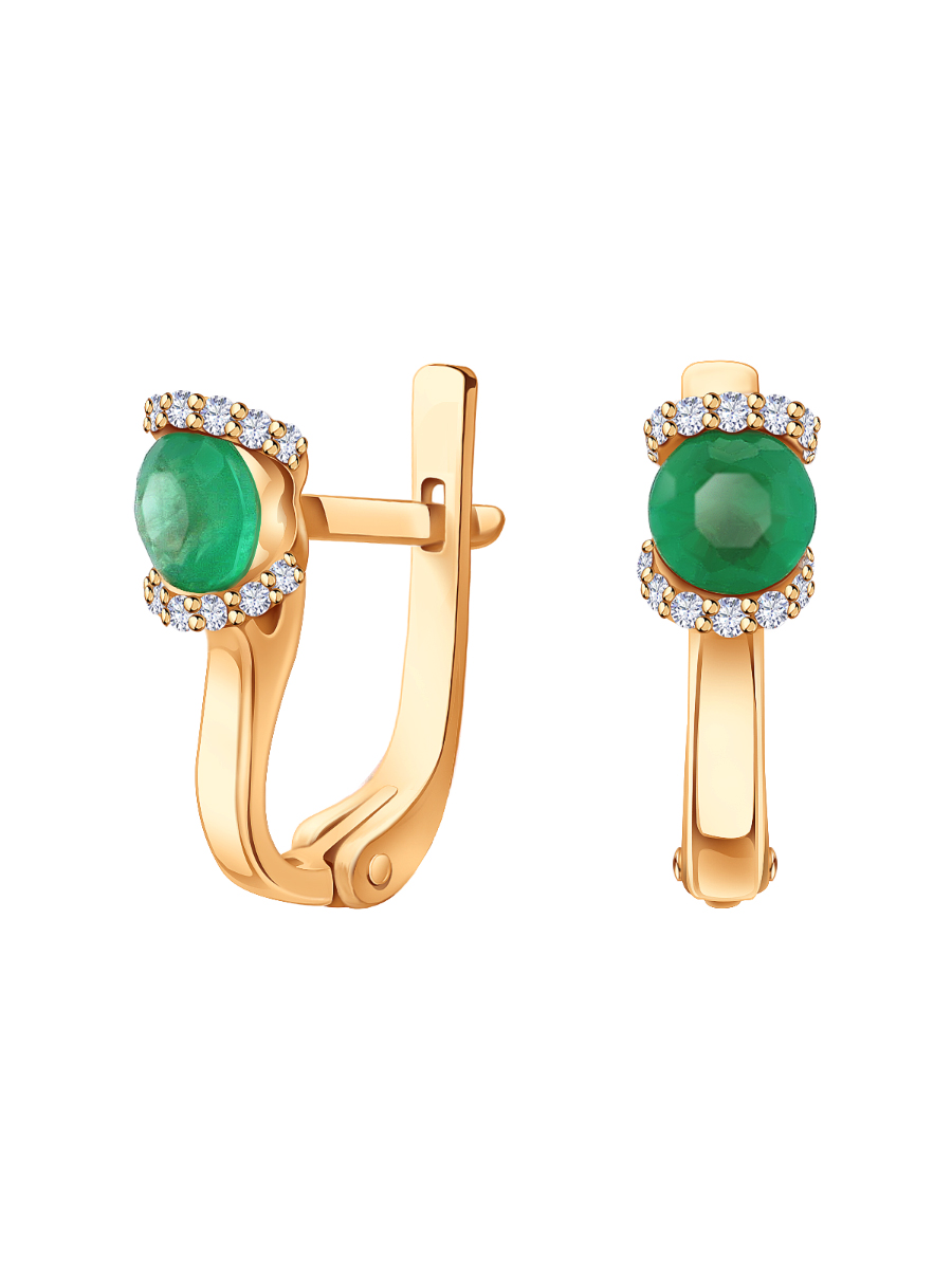 Серьги золотые 585 с изумрудами и бриллиантами 2100555-00060