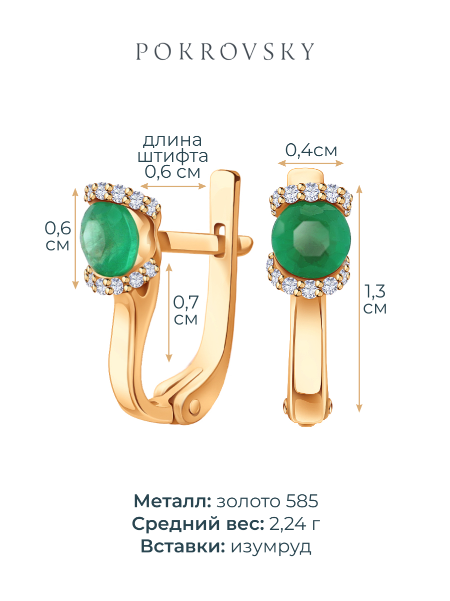 Серьги 2100555-00060 Au 585 (2020268200316 (28 Бр. кр57 (0,90) 0,092 ct 4/5 /А ,2 Изумр. круг 4,00 0,5 ct 3/3))