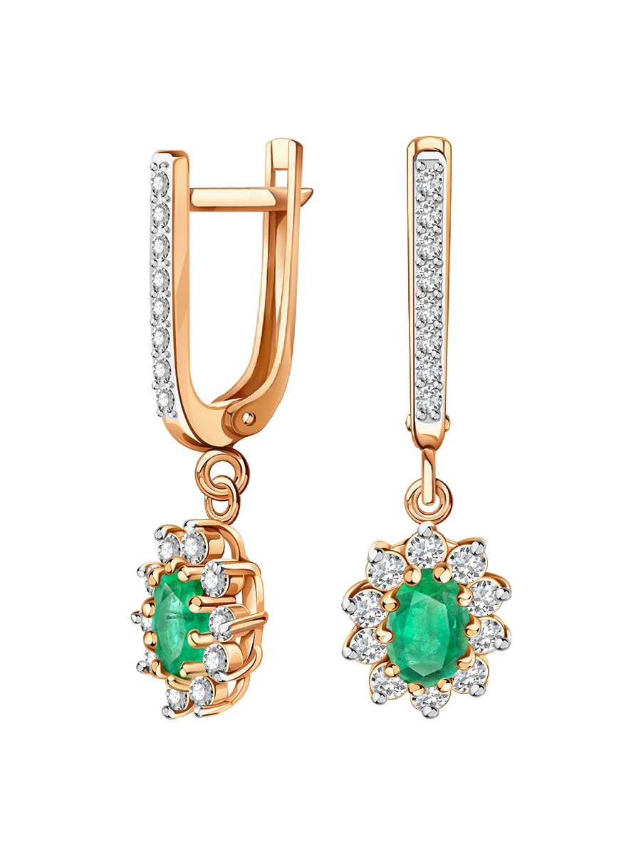 Серьги золотые 585 с изумрудами и бриллиантами