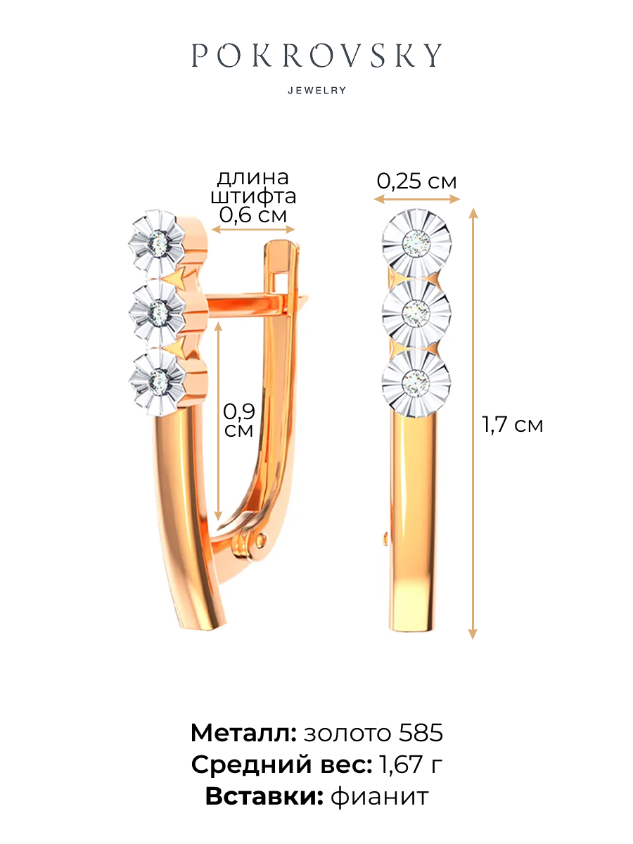 Серьги 0201923-00770 Au 585 (2020251837598 (6 Фиан. кр. 1,00 0,012 г.))