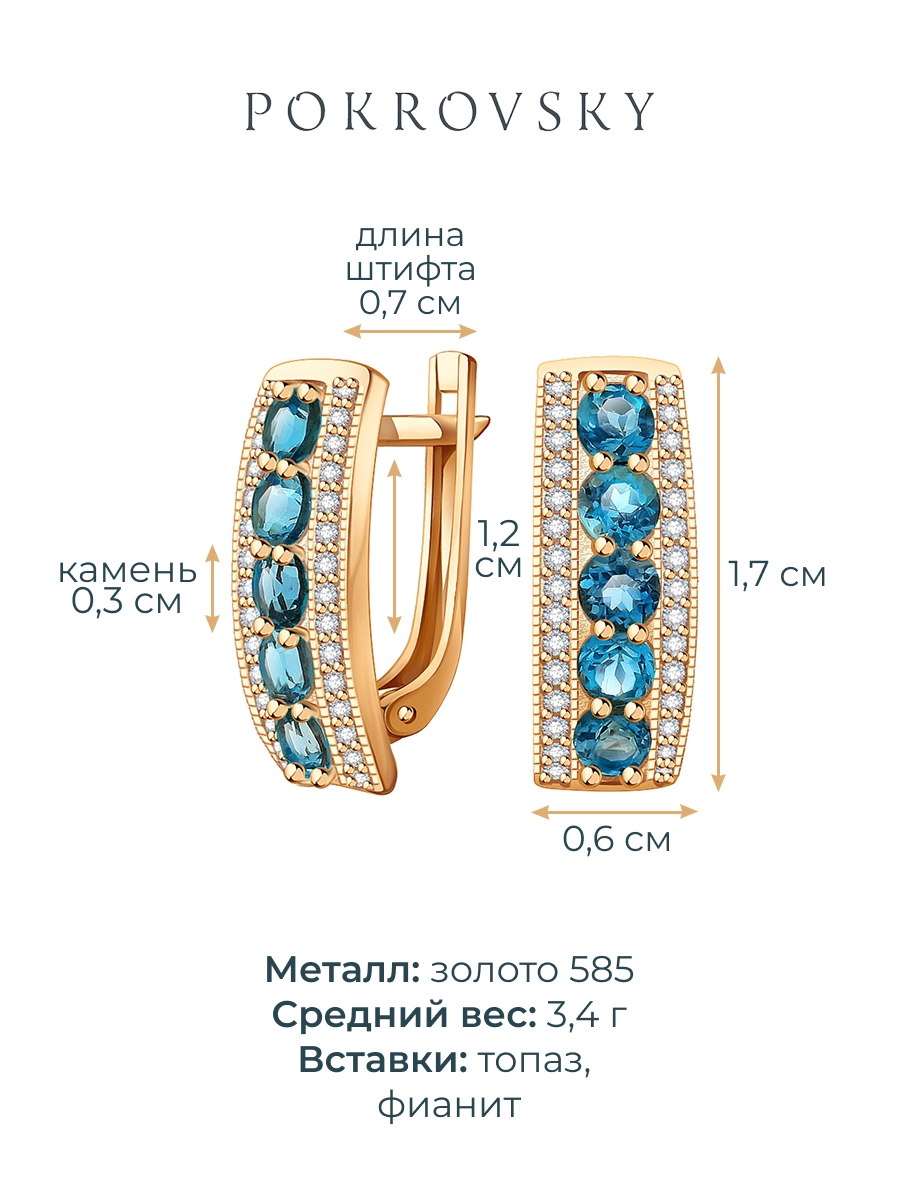 Серьги золотые 585 с лондон‑блю топазами и фианитами 2101143-00740
