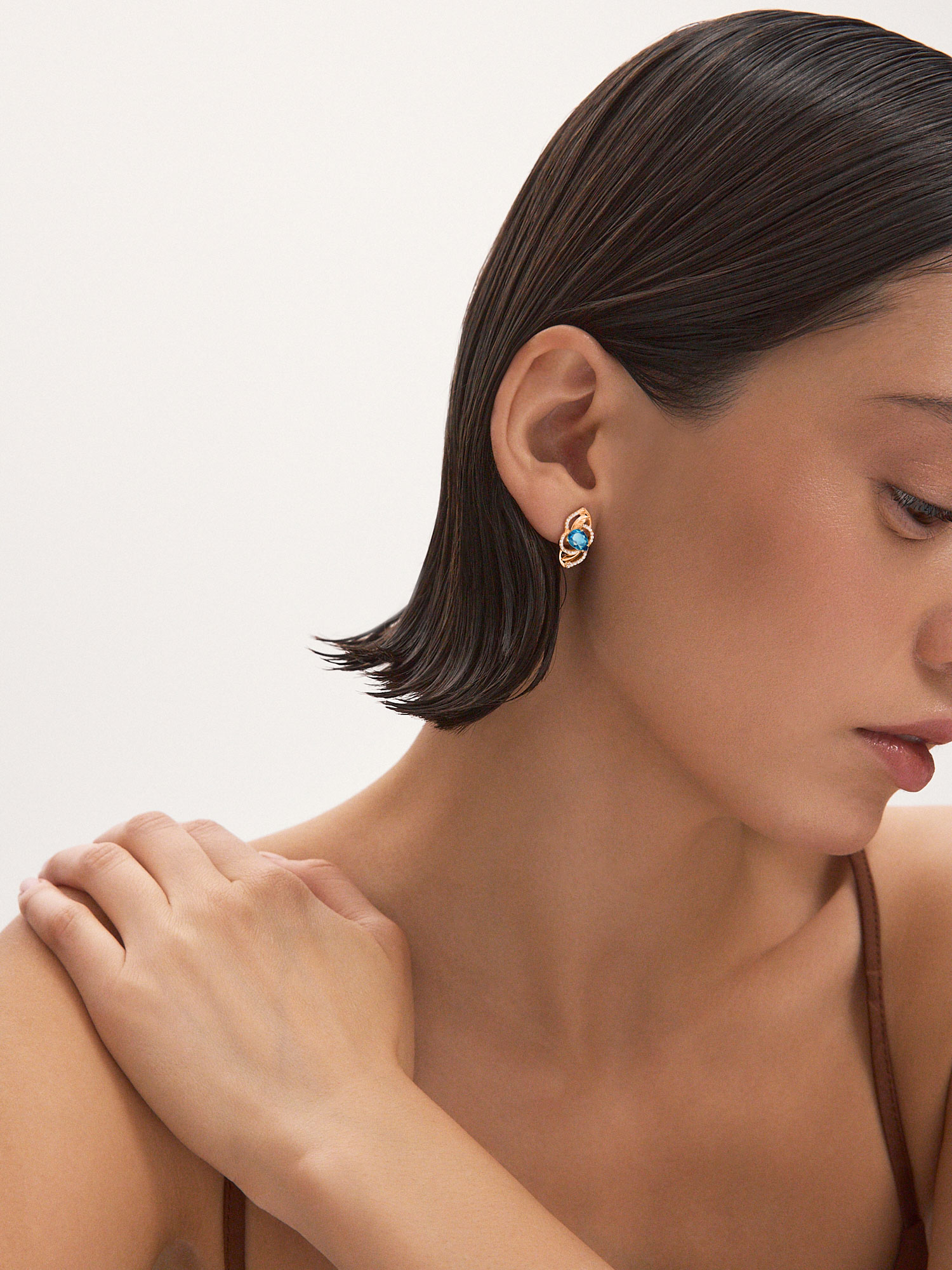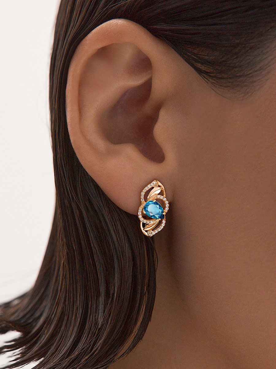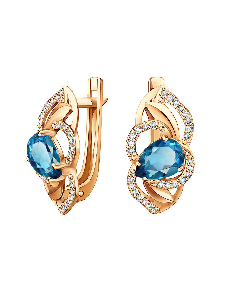 Серьги золотые 585 с лондон‑блю топазами и фианитами 2100980-00740