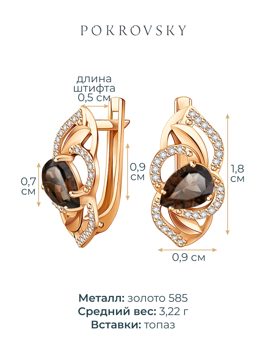 Серьги золотые 585 с раухтопазом и фианитами 2100980-00630