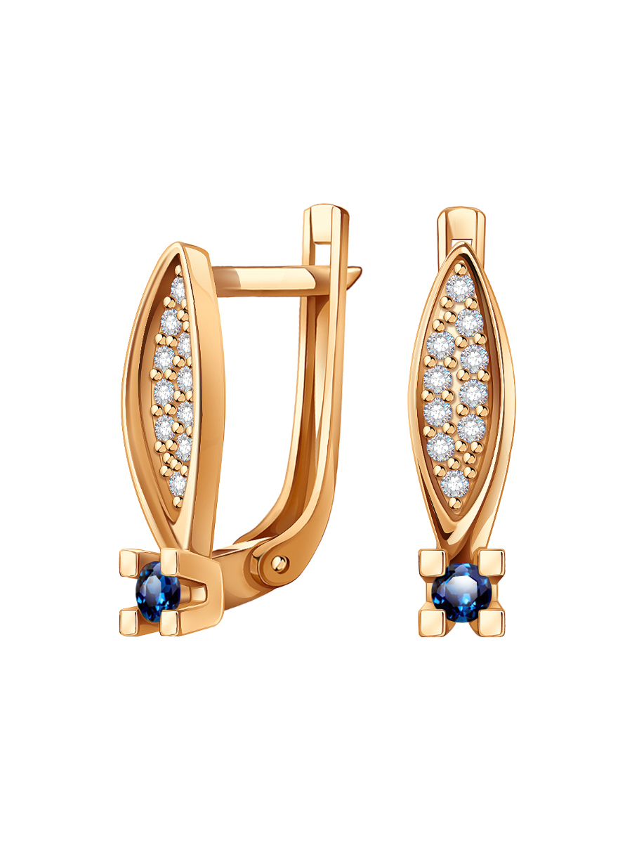 Серьги 2101301-00050 Au 585 (ШК: 2020050516175; Вставка: 20 Бр. кр57 (1,00) 0,1 ct 3/5 /А ,2 Сапф. круг 2,00 0,086 ct 2/2 синий; )
