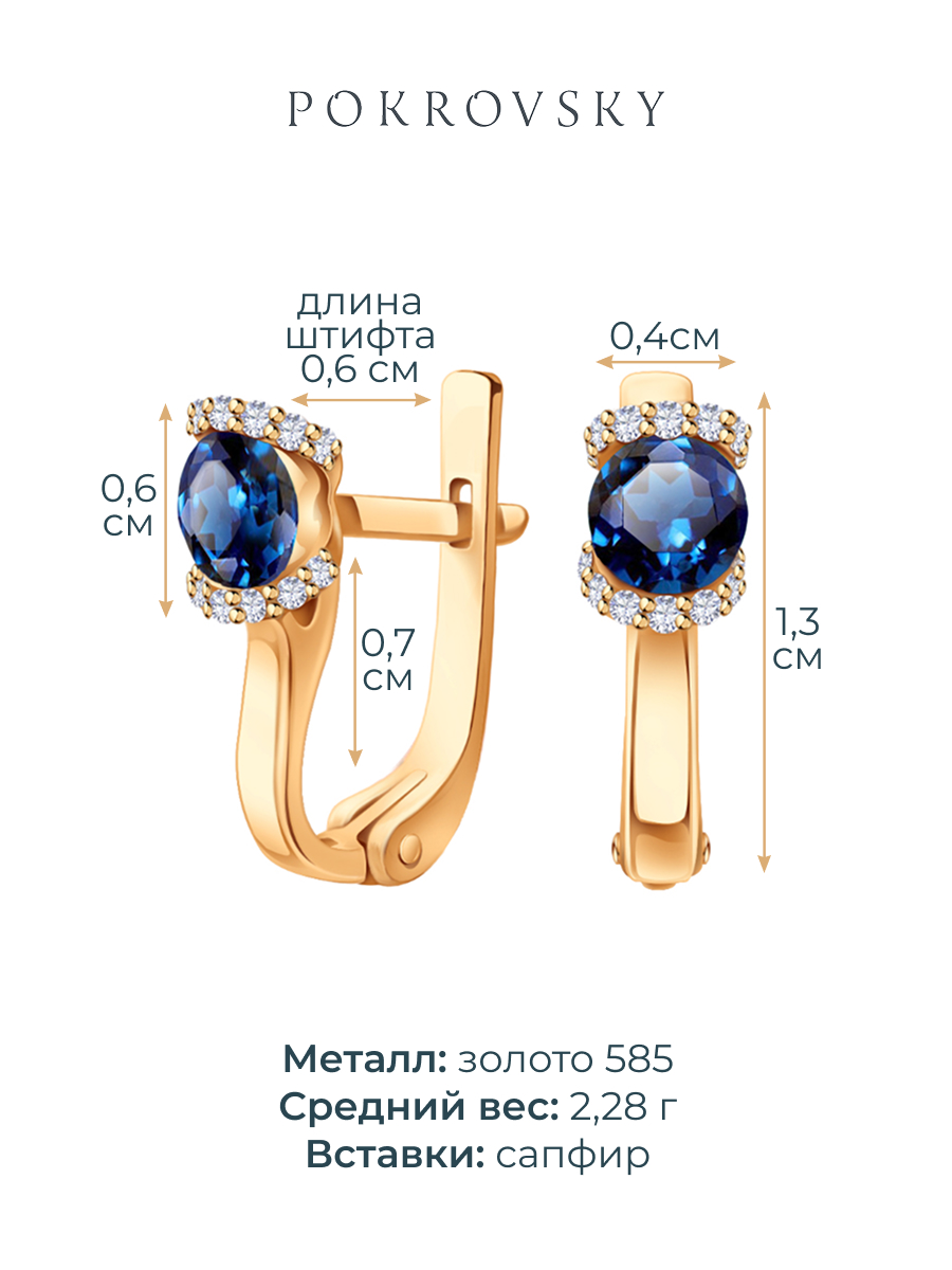 Серьги золотые 585 с сапфирами и бриллиантами 2100555-00050