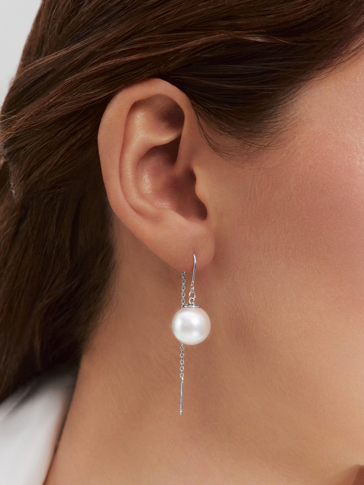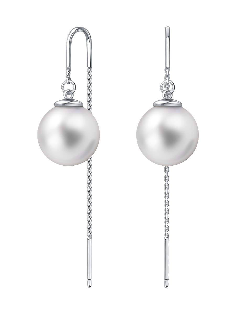 Серьги протяжки серебряные 925 с белым жемчугом