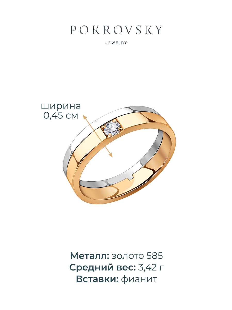 Кольцо обручальное золотое 585 с камнем фианитом 4,5 мм 0101800-00776