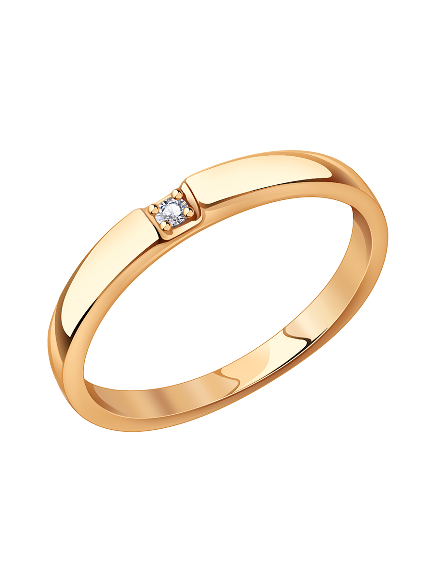 Кольцо обручальное золотое 585 с фианитом 2 мм