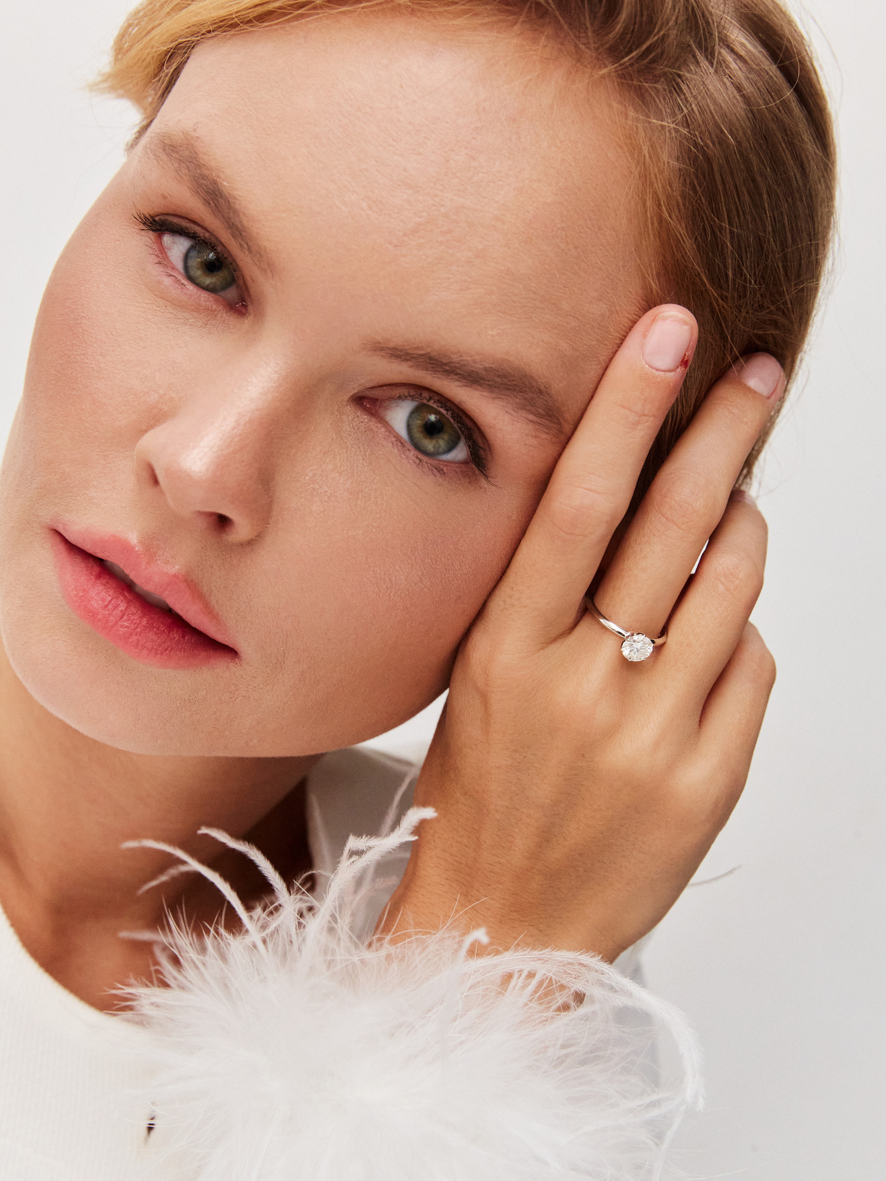 Кольцо помолвочное из белого золота 585 с муассанитом кольца