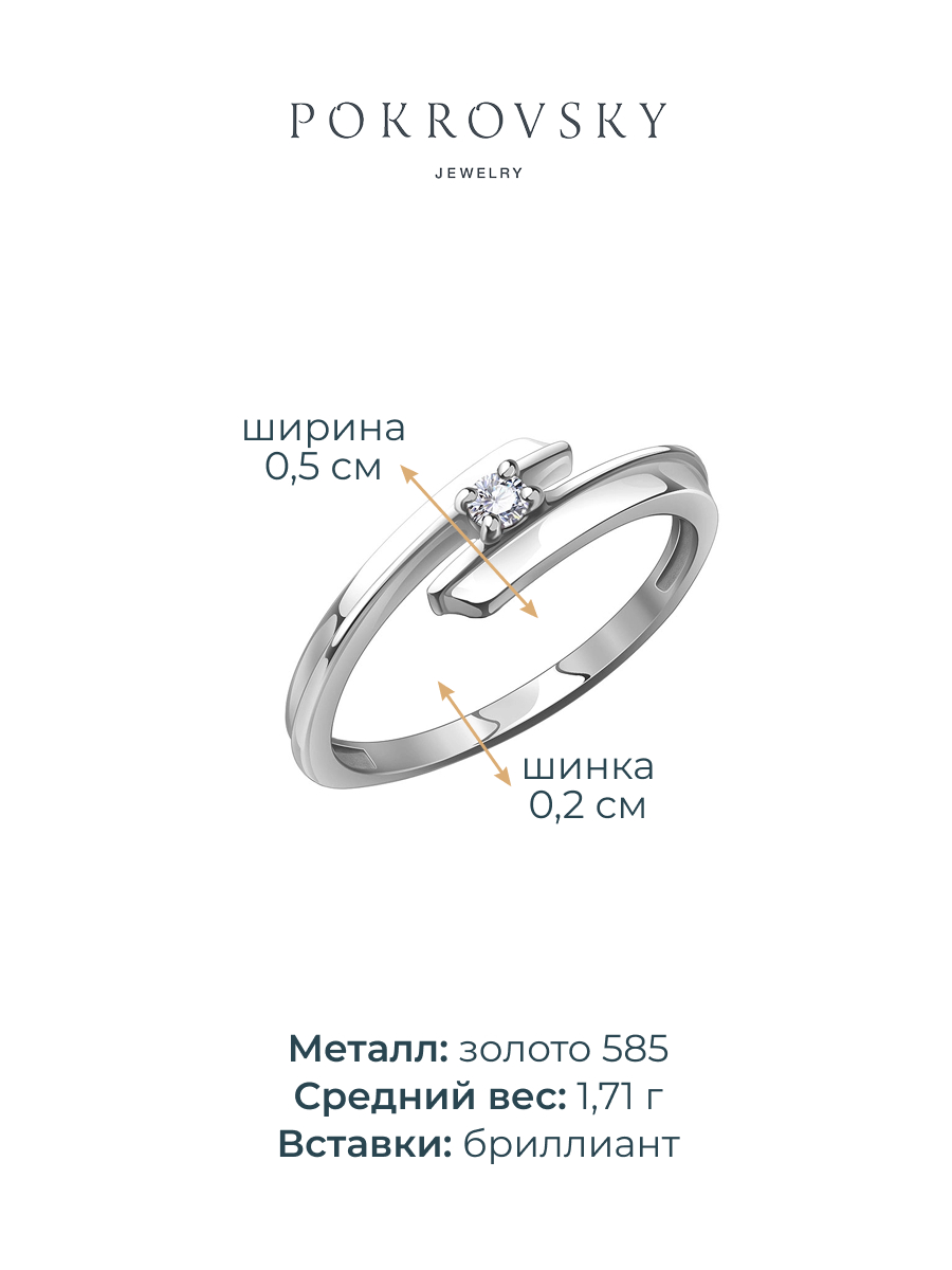 Кольцо помолвочное из белого золота 585 с бриллиантом